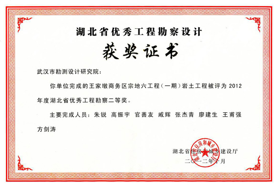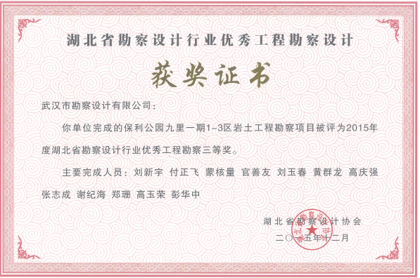 保利公園九里一期1-3區巖土工程勘察項目獲2015年度湖北省勘察設