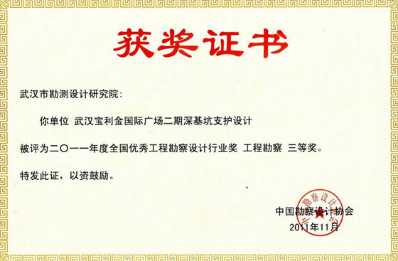工程勘察三等獎(jiǎng)