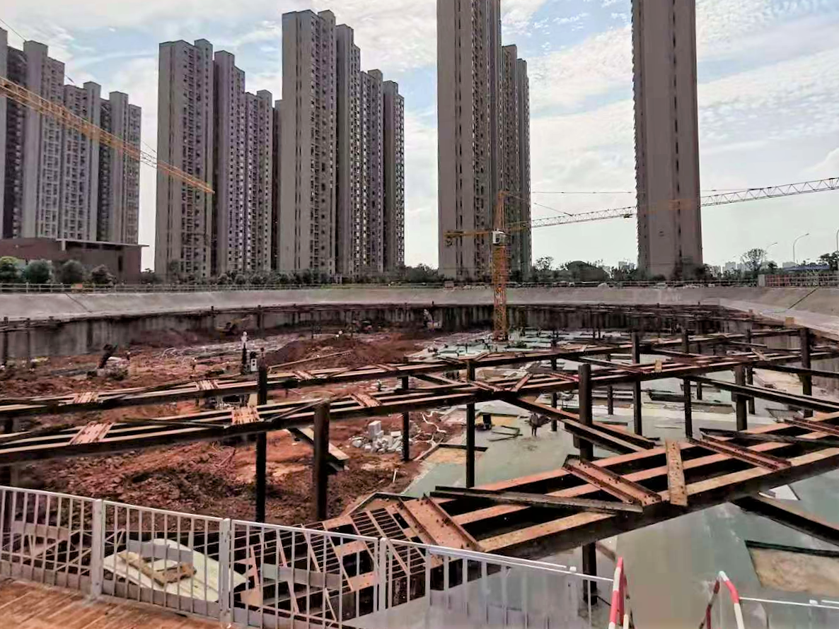 該項(xiàng)目位于武漢市洪山區(qū)青菱新區(qū),地下設(shè)兩層地下室,基坑開(kāi)挖面積14600㎡,基坑周長(zhǎng)476m,基坑開(kāi)挖深度9.8m—13.6m。在項(xiàng)目方案設(shè)計(jì)階段,設(shè)計(jì)中心技術(shù)團(tuán)隊(duì)經(jīng)充分討論后決定大膽創(chuàng)新,采用型鋼組合支撐的綠色新工藝,該工藝是武漢市兩層地下室基坑工程中的首次成功應(yīng)用。