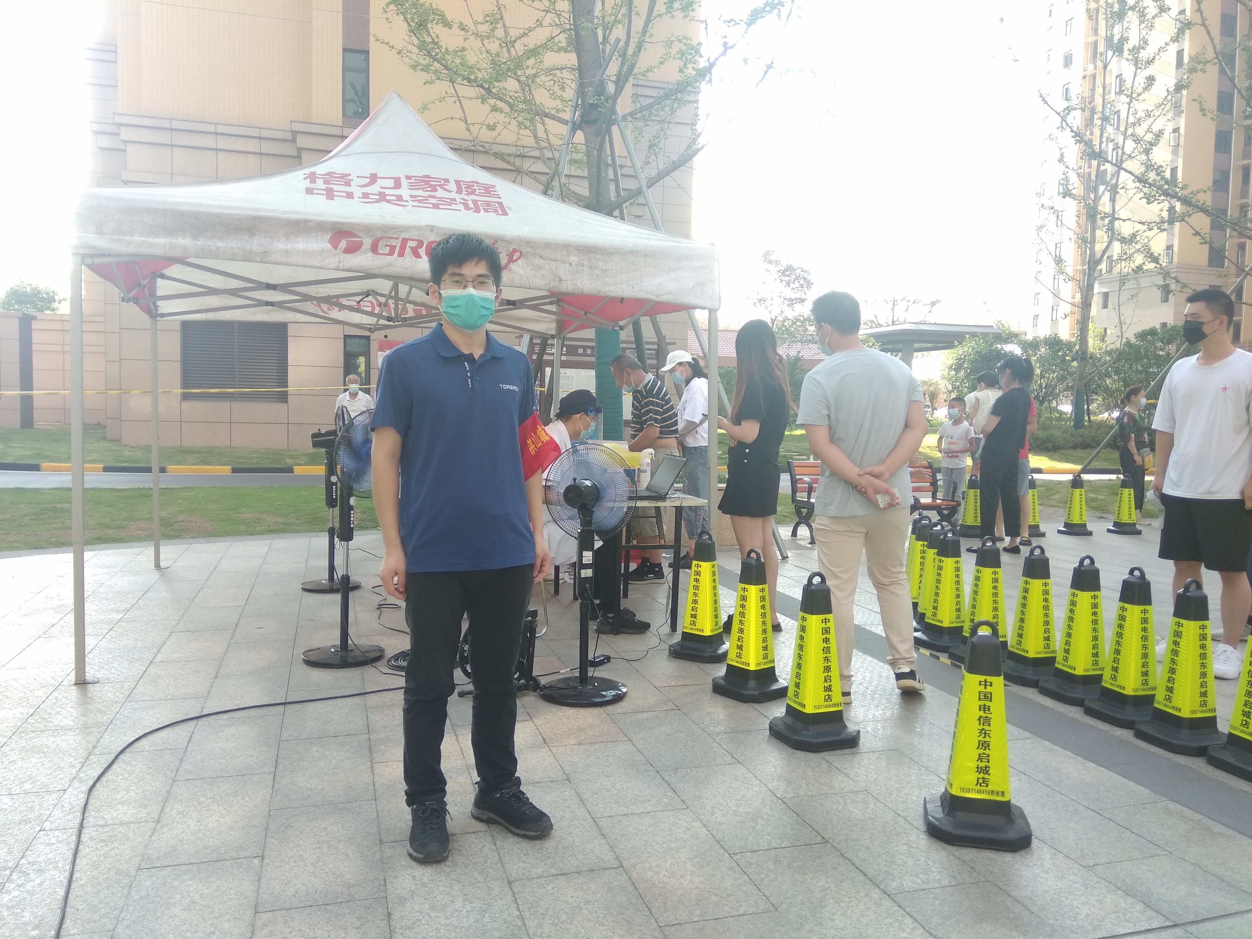 8月4日,公司黨員謝朋、蔣屹早上6:30便已到達社區統一安排的崗位上開始工作。據了解,勝利社區共有1998戶住戶,為避免人員密集,社區在全社區設置了3個核酸檢測點,分時分批組織居民檢測。“請大家戴好口罩,保持好安全距離!”“請有序排隊等待檢測,如有身體不適,請盡快聯系志愿者!”在炎炎夏日的高溫下,黨員們耐心地向社區居民告知注意事項,維護好現場秩序,組織登記、測量體溫,每時段檢測完成后及時疏散,確保核酸檢測安全、有序進行。通過一天的努力,勝利社區3個核酸檢測點分別檢測442人、479人、388人,共計1309人。