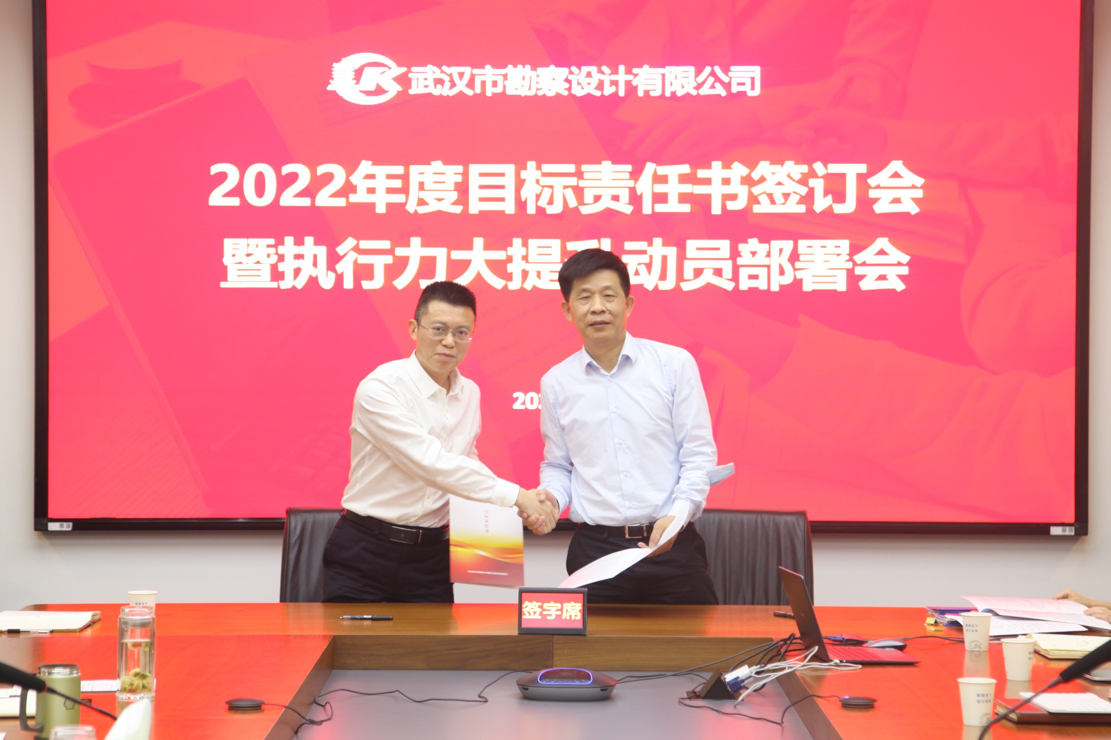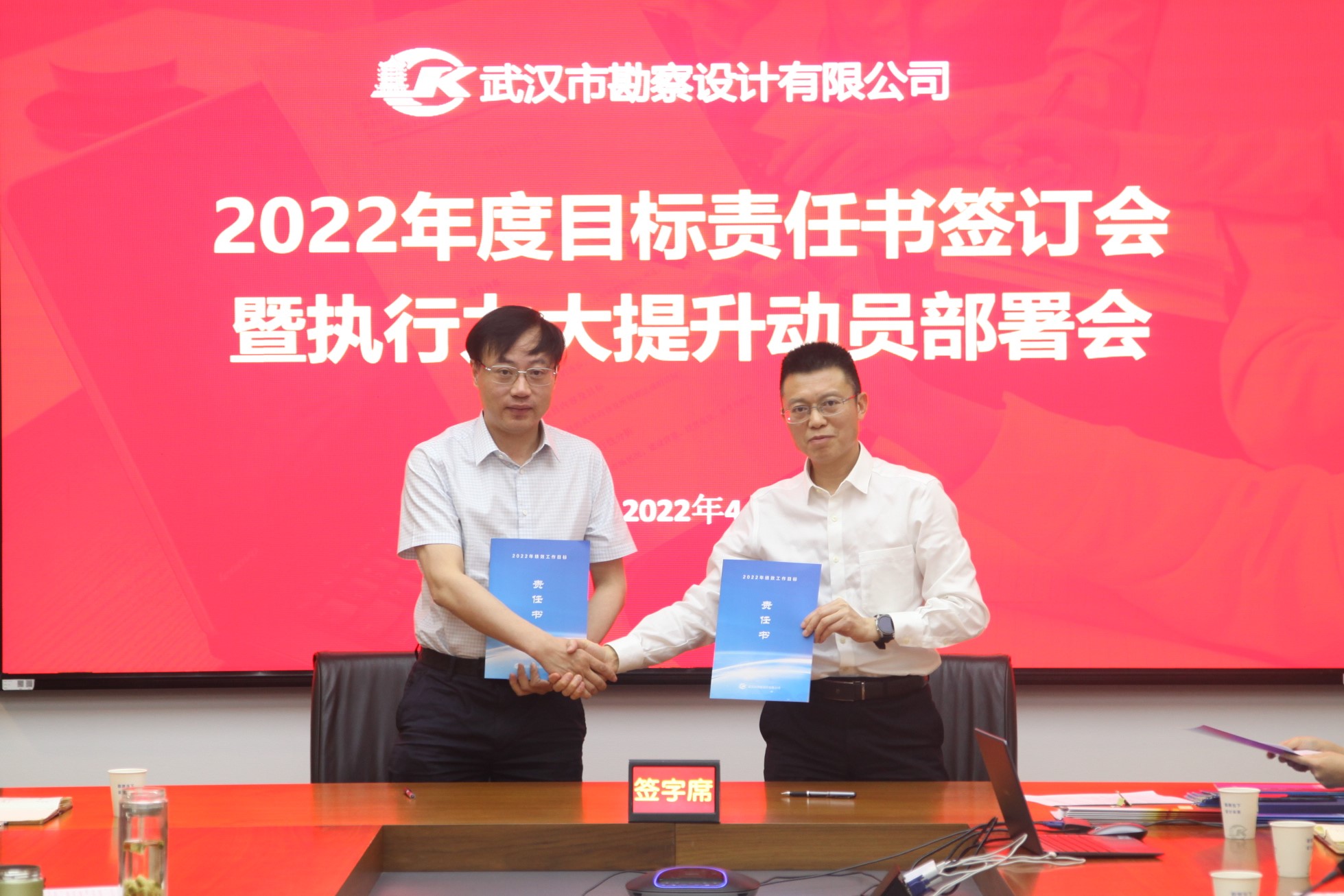 4月14日上午,公司在1717會(huì)議室組織召開“執(zhí)行力大提升”行動(dòng)動(dòng)員部署會(huì)暨2022年度目標(biāo)責(zé)任書簽訂會(huì)。會(huì)議圍繞武漢城建集團(tuán)“萬千百十一”、“執(zhí)行力大提升”、“揭榜掛帥”三大行動(dòng)作出了宣貫部署,以高質(zhì)量完成年度各項(xiàng)任務(wù)為目標(biāo)導(dǎo)向,進(jìn)一步統(tǒng)一思想、分解任務(wù)、強(qiáng)化目標(biāo)、落實(shí)責(zé)任,為公司全年工作制定了科學(xué)的行動(dòng)指南、打下了堅(jiān)實(shí)的思想基礎(chǔ)。