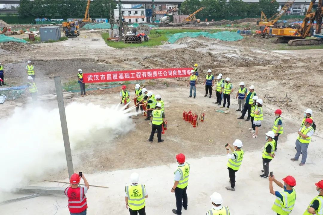 公司基礎(chǔ)施工項(xiàng)目中,三金潭車(chē)輛段上蓋物業(yè)綜合開(kāi)發(fā)項(xiàng)目B區(qū)二期項(xiàng)目、武漢市肺科醫(yī)院異地遷建項(xiàng)目樁基工程項(xiàng)目及孝南區(qū)碧公臺(tái)安置房建設(shè)項(xiàng)目一期樁基工程分別在5月、6月開(kāi)展消防應(yīng)急演練。6月23日,公司副總經(jīng)理兼工會(huì)主席蔣濤帶隊(duì),組織公司各部門(mén)有關(guān)人員,于武漢市肺科醫(yī)院異地遷建項(xiàng)目樁基工程項(xiàng)目開(kāi)展2022年度應(yīng)急演練活動(dòng),累計(jì)參訓(xùn)30余人,進(jìn)一步提升了公司在建項(xiàng)目的應(yīng)急處置能力,強(qiáng)化應(yīng)急實(shí)戰(zhàn)能力,筑牢應(yīng)急防線。(技術(shù)質(zhì)量安全部供稿)