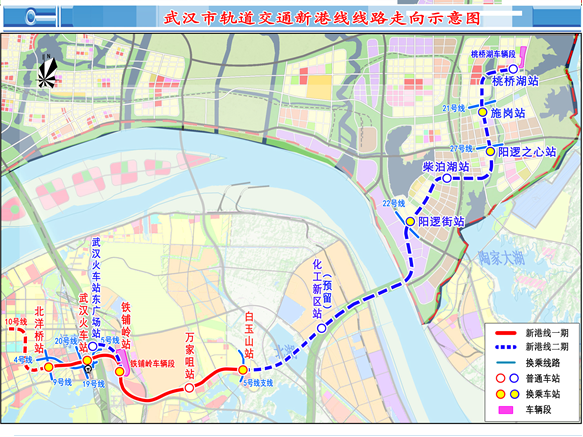 新港線為武漢軌道交通線網(wǎng)中的市域快線,與10號(hào)線共同連接了武漢經(jīng)濟(jì)技術(shù)開(kāi)發(fā)區(qū)、王家墩CBD、東部新城及大臨港地區(qū),加快了主城與西南新城組群、東部新城組群的快速?gòu)?fù)合交通走廊的構(gòu)建,是軌道交通線網(wǎng)中重要的穿越型市域快線。新港線工程主要串聯(lián)楊春湖副中心、武漢火車站、青山區(qū)武東、北湖新城、陽(yáng)邏新城等片區(qū),重點(diǎn)服務(wù)于東部新城組團(tuán),強(qiáng)化東部新城組團(tuán)與武漢高鐵站的銜接,加強(qiáng)東部新城組團(tuán)與主城區(qū)的聯(lián)系,支撐東部新城組團(tuán)發(fā)展。