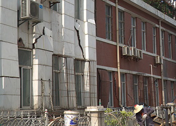 事故現場位于省人民醫院附近,張之洞路從解放路路口至復興路路口一段。事發工地上,大型吊車正開展設備清理吊運工作,事故地段道路已設置施工圍欄,只留下不到兩米寬的安全通道。盡管險情已初步得到控制,但事故區域邊緣樓房側壁大面積范圍內出現裂縫,墻體輕微坍塌,有進一步下陷趨勢。