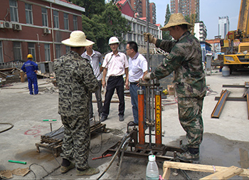 我公司技術團隊到達后,與地鐵、城建委等相關部門的工作人員對現場險情進行分析,并制定了搶險方案。一方面,采用管線探測設備對事故影響范圍內的管線進行探測,查明管線分布情況,同時指導勘探工作,避免因勘探工作破壞管線,造成新的事故;另一方面,采用靜力觸探儀對事發現場進行勘探,查明地層的在險情發生后的變化情況和搶險控制后的效果,分析再次發生涌水涌砂的可能性。