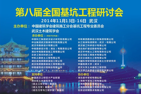 2014年11月14日,第八屆全國基坑工程研討會(huì)在武漢市洪山賓館隆重召開。此研討會(huì)每兩年舉辦一次,是國內(nèi)基坑工程技術(shù)專業(yè)的頂級(jí)交流活動(dòng)。本次大會(huì)共有來自全國各地的行業(yè)精英700余人參加,并邀請到龔曉南、劉祖德、范士凱、顧金才、黃強(qiáng)、唐雨耕、宋二祥、鄭剛、王衛(wèi)東、徐武建、彭浩、張曠成等工程院院士、全國頂尖大師、知名學(xué)者及重要領(lǐng)導(dǎo)作為與會(huì)嘉賓,大家齊聚一堂,共襄盛會(huì)。