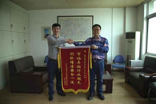 2016年4月12日上午,中國石化銷售有限公司湖北石油分公司將一面“市場弄潮行業領先,測繪精湛服務一流”的錦旗送到武漢市勘察設計有限公司,以感謝在加油站綠化驗收測量及工程勘察項目中為其提供了優質、高效的服務,同時就相關業務問題進行了交流探討,為下一步開展合作奠定了良好的基礎。(綜合部、測繪工程公司聯合供稿)