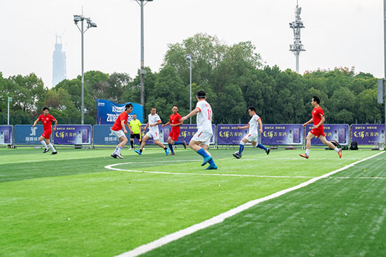 隨著開場的一聲哨響,雙方隊員迅速投入到比賽中,搶斷、過人、射門、撲救……精彩場面一個接一個,場下的啦啦隊和觀眾也被場上隊員的頑強拼搏精神所感染,不時發(fā)出歡呼和喝彩之聲。在將近90分鐘的比賽中,雙方隊員你追我趕,奮力馳騁,盡情享受著足球給大家?guī)淼臉啡ぁkm然僅僅是一場友誼賽,但是雙方隊員在場上所體現(xiàn)出來的拼搏精神和對比賽的專注態(tài)度并不亞于任何職業(yè)選手。17時,隨著主裁判的一聲哨響,球賽比分定格2:1,公司一球小勝,本次足球友誼賽取得圓滿成功。