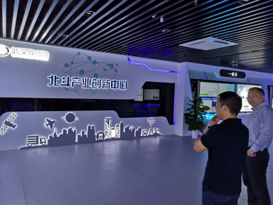 在總經理王波、副總經理華中雄等人的陪同下,測繪公司一行人參觀了北斗產業創新中心。王波總經理從軟件平臺、數據研發、行業應用、運營服務等方面對北斗產業的發展與應用情況進行了詳細介紹,并表示湖北地信集團致力于積極推動北斗和其他領域的融合發展,形成了初具規模的產業鏈,充分基于衛星定位、云計算、物聯網等新技術,開拓了政務、民生、產業三大類十余項的智慧應用,已逐漸深入到城市建設和管理的各個領域。