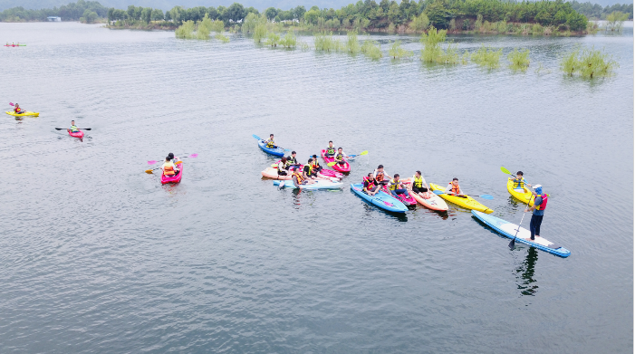 在第二天的皮劃艇水上團建活動中,更是凸顯了公司“勇往直前、團結一致”的拼搏精神,全體隊員齊心協力,通過“團結一心”、“水上鋼琴”、“群龍出擊”等分組活動,大家用汗水、喜悅和成功印證了一個團結奮進的隊伍、一個勇于面對困境的隊伍、一個內心強大的隊伍一定能夠把握機會、戰勝困難、贏得成功。下午隊員們游覽了仙島湖風景區,在涼爽的秋風中盡情感受了湖光山色。