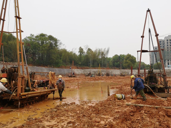 咸寧市高新區(qū)擬對(duì)園區(qū)內(nèi)甘魯棚戶區(qū)進(jìn)行拆遷改造,項(xiàng)目規(guī)劃20余棟建筑物,我公司中標(biāo)該項(xiàng)目施工勘察任務(wù)。項(xiàng)目一期8棟建筑物的施工勘察已與2017年11月順利完成。本次二期工程10棟建筑物詳勘報(bào)告顯示,擬建場(chǎng)地內(nèi)礫巖中發(fā)育有巖溶,受業(yè)主委托,我公司在新冠肺...